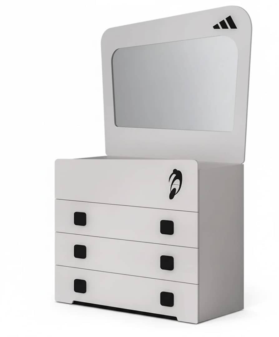 سرویس خواب نوجوان آدیداس‑۱.۱ از برند بیبیهوم (BabyHome) ترکیبی از سادگی مدرن و هیجان ورزشی است که الهامگرفته از برند جهانی آدیداس طراحی شده. استفاده از رنگ سفید براق در کنار خطوط مشکی زاویهدار، حس تحرک، نظم و انرژی را در فضای اتاق نوجوان ایجاد میکند. طراحی خطی و قرینه، به فضا جلوهای منظم و چشمنواز داده و تضاد رنگی قدرتمند، بر سبک اسپرت مجموعه تأکید دارد.