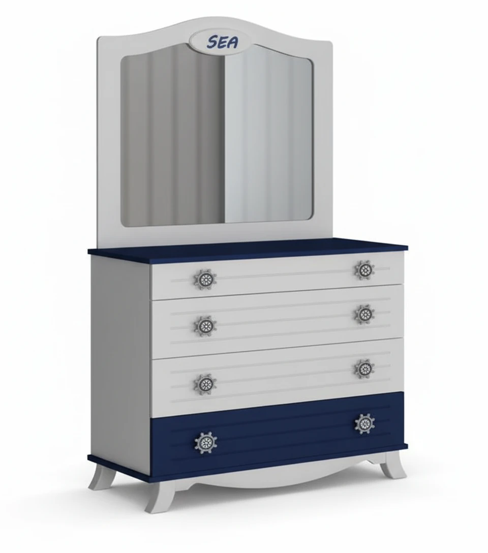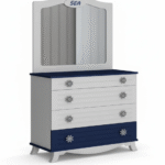 سرویس خواب نوجوان ساویس‑۱ از برند بی‌بی‌هوم (BabyHome) با طراحی منحصربه‌فرد دریایی، فضایی سرشار از نشاط و انرژی مثبت برای نوجوانان ایجاد می‌کند. ترکیب رنگ‌های سفید و آبی تیره در کنار جزئیاتی چون دسته‌های طرح سکان کشتی و تاج‌های منحنی شکل، جلوه‌ای خاص و متفاوت به این مجموعه بخشیده است.