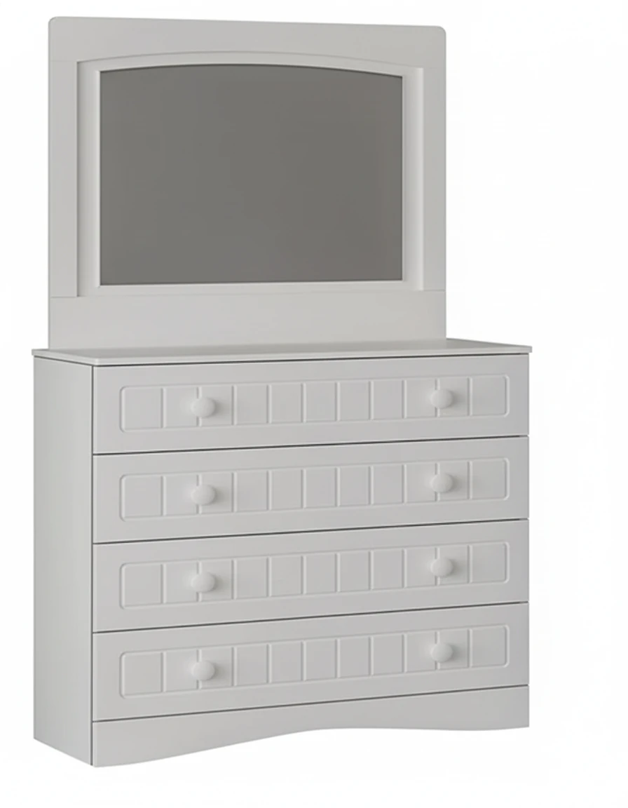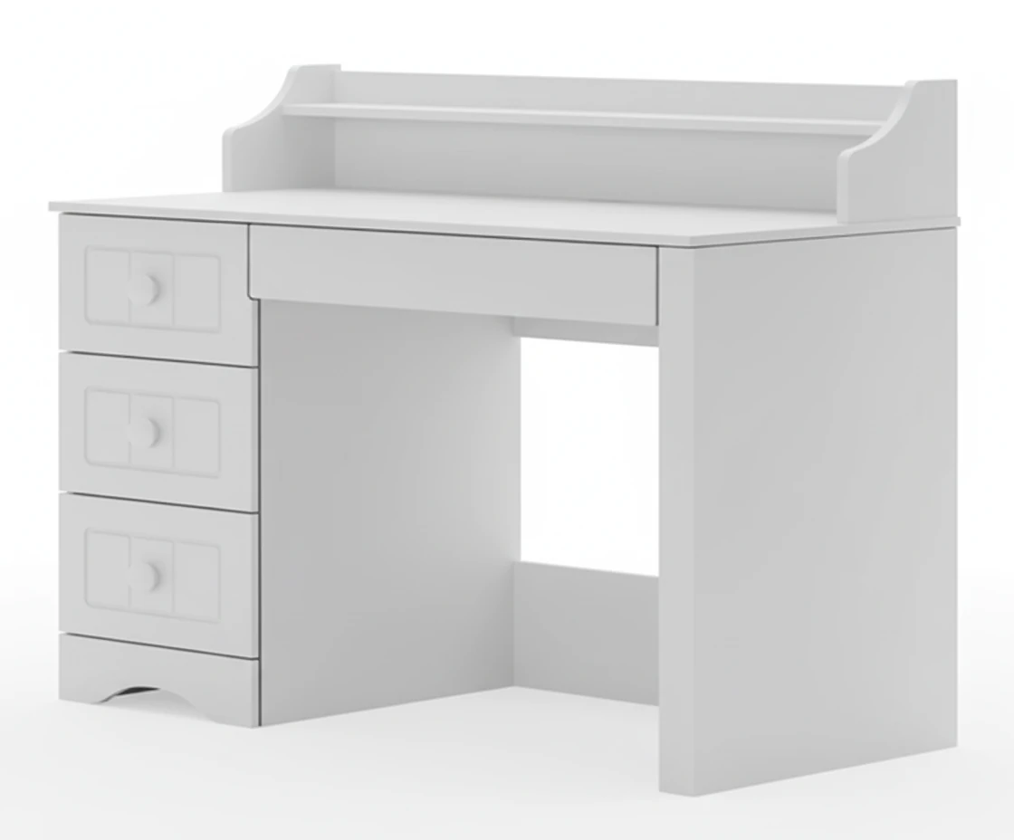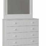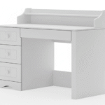میز تحریر مجموعه با چینش منظم کشوها و سطح کاری بزرگ، فضایی ایدهآل برای مطالعه و انجام تکالیف روزانه ایجاد کرده است. دراور آینهدار با چهار کشوی جادار برای نظمدادن به وسایل شخصی و آرایشی طراحی شده و آینه ساده و قابدار آن جلوهای آرام و کاربردی دارد. پاتختی کوچک با کشو و صفحه کاربردی، طراحی مجموعه را کامل میکند.