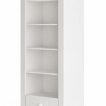 کمد دودرب این مجموعه با طرح شیاردار عمودی و دو کشوی پایینی، هماهنگی کامل با طراحی تخت دارد. فضای داخلی جادار آن امکان تفکیک و نظمدهی آسان به لباسها و وسایل کودک را فراهم میکند. کتابخانه نارین‑2 نیز با فرم ساده عمودی و قسمتهای باز طبقهبندیشده، جای مناسبی برای کتابها، عروسکها و وسایل تزئینی است و طراحی کشوی پایینی جلوه و کارایی آن را کامل کرده است.