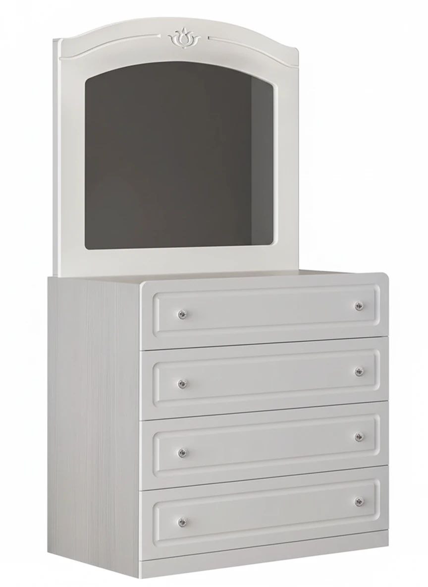 اجزای مجموعه شامل تخت نوجوان با طراحی ارگونومیک و تاج نرم و لمسهدار برای راحتی استراحت و مطالعه، میز تحریر کاربردی با فضای کافی برای کتاب و وسایل شخصی، دراور آینهدار با کشوهای جادار برای نظمدهی، و پاتختی کوچک در کنار تخت برای ساماندهی لوازم روزمره میباشد. ترکیب این قطعات، فضایی منظم و چشمنواز برای نوجوان ایجاد میکند که در آن احساس آرامش، استقلال و زیبایی در کنار هم جریان دارد.