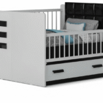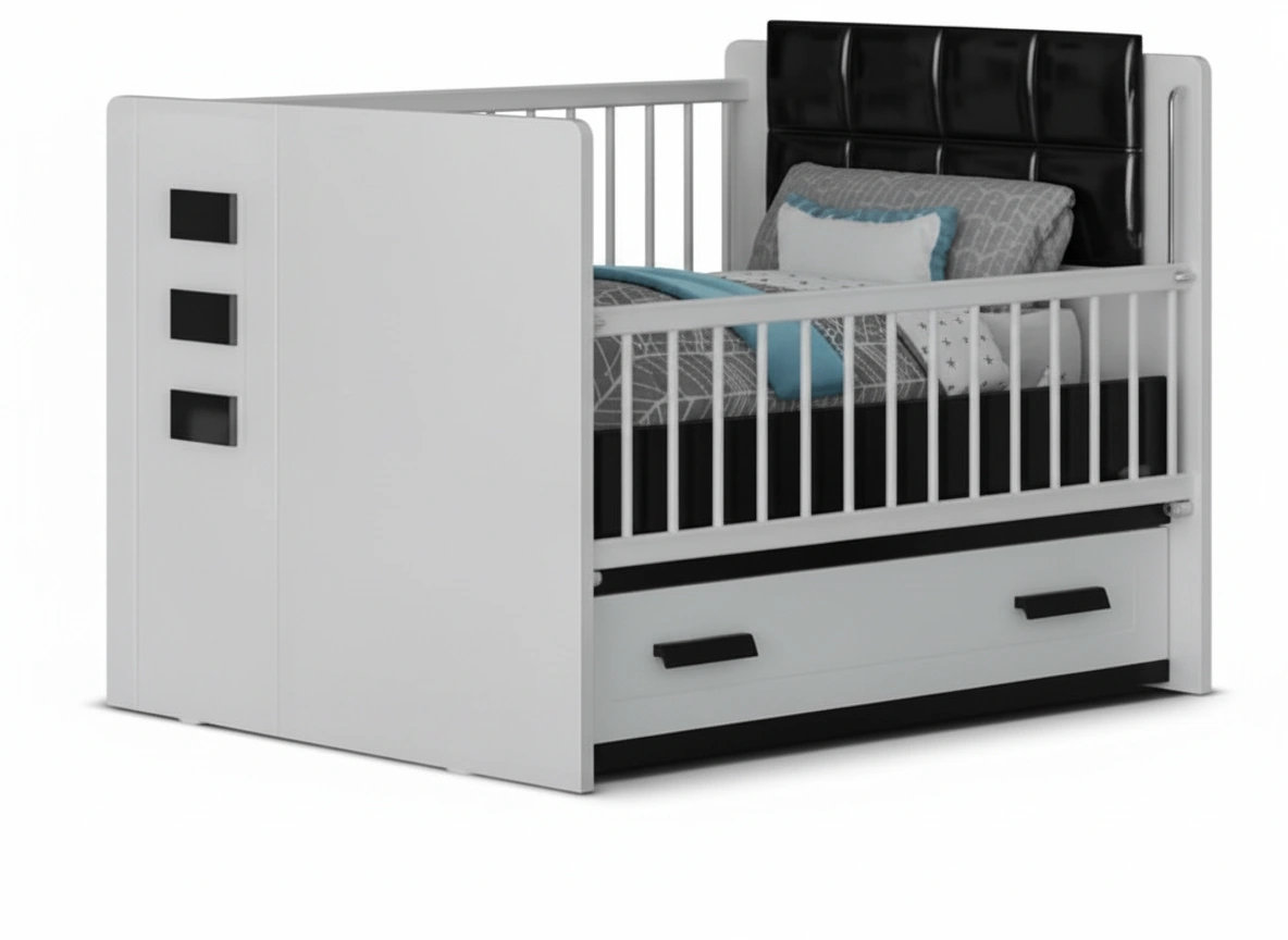 سرویس خواب نوزادی اسپرت‑۳ از برند بی‌بی‌هوم (BabyHome) با طراحی امروزی و رنگ‌بندی مشکی و سفید براق، جلوه‌ای خاص و منظم به چیدمان اتاق نوزاد می‌دهد. فرم‌های ساده، خطوط صاف و توازن رنگی بین تضاد مشکی و روشن، این مدل را به یکی از گزینه‌های محبوب خانواده‌هایی با سلیقه مدرن تبدیل کرده است.