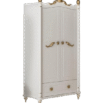 سرویس خواب نوزادی تاج‑۲ از برند بیبیهوم (BabyHome) با الهام از طراحی کلاسیک اروپایی، فضایی گرم، لوکس و آرامشبخش برای نوزادان خلق میکند. رنگ سفید ملایم در کنار جزئیات طلایی در تاجها، دستگیرهها و پایههای تراشخورده، شکوه و اصالت خاصی به این مجموعه بخشیده است.
