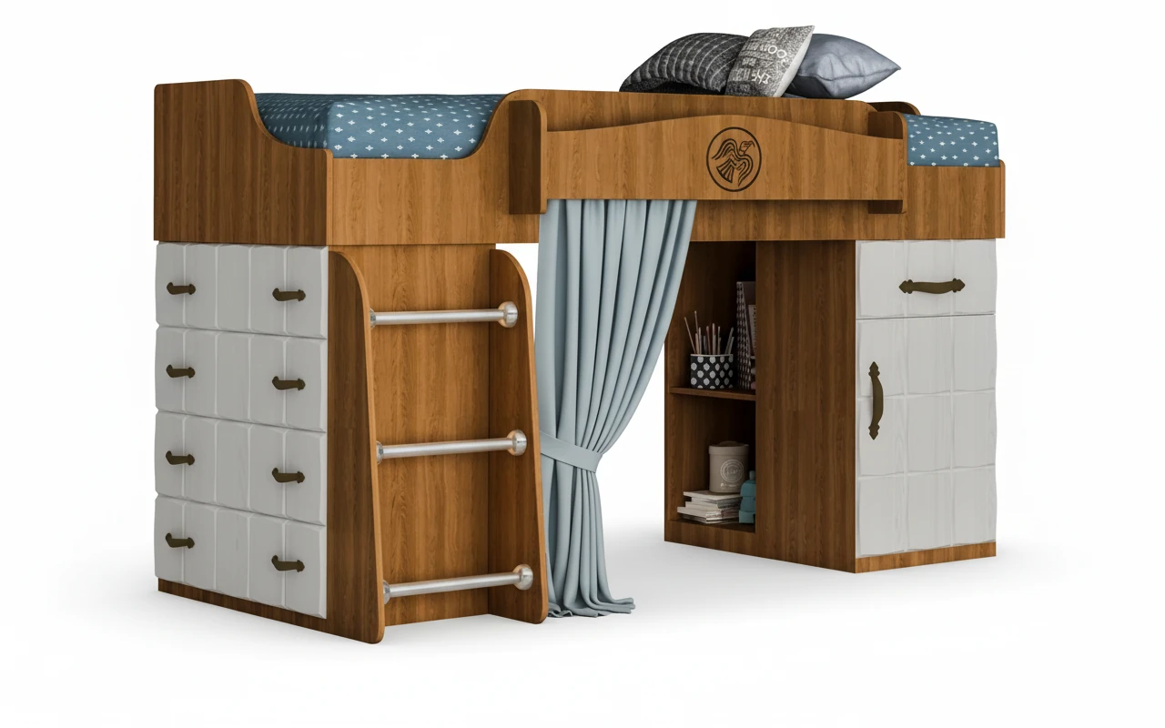 تخت نوزادی دومنظوره ترنج‑1 با فرم منحنی نرم در قسمت بالایی، جلوهای جذاب و کودکانه دارد. ارتفاع ایمن تخت و نرده محافظ جلویی، محیطی مطمئن برای استراحت نوزاد فراهم میسازد. بخشهای کناری تخت با چندین کشو طراحی شدهاند که فضای کافی برای نگهداری لباس، اسباببازی و وسایل روزمره نوزاد را فراهم میکنند. زیر تخت نیز بهصورت هوشمندانه بهعنوان محفظهای کوچک برای بازی یا کتابخانه باز طراحی شده تا استفاده از فضا به حداکثر برسد.