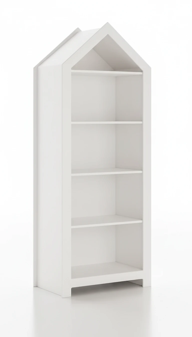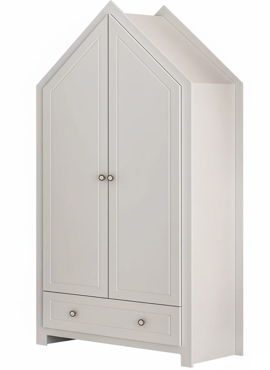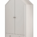 کمد دودرب با طراحی هرممانند بالا و کشوی پایین، جلوهای مینیمال و خلاقانه دارد که در عین سادگی، هماهنگی کامل با فرم تخت و کتابخانه ایجاد میکند. کتابخانه نیز بهصورت باز با فرم سقف شیبدار طراحی شده تا وسایل، اسباببازیها و کتابهای کودک در دسترس او باشند؛ به همین دلیل تکمیلکننده فلسفه مونتهسوری در تعامل کودک با محیط محسوب میشود.
