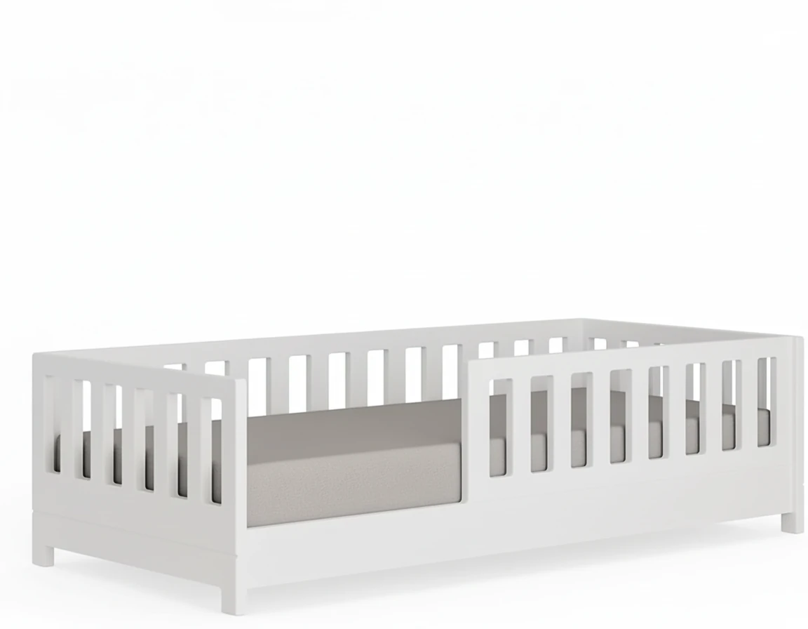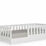 تخت نوزادی این مجموعه با ساختار سقفدار به شکل خانه کوچک، نهتنها زیبا و متفاوت است، بلکه حس فضای شخصی و امن را برای نوزاد ایجاد میکند. خطوط صاف، ارتفاع استاندارد و نردههای عمودی با فاصله مناسب، امنیت کامل کودک را در کنار ظاهر مدرن حفظ میکنند. رنگ سفید مات در تمام قطعات، باعث بازتاب نور و ایجاد حس پاکی و آرامش در فضا میشود.