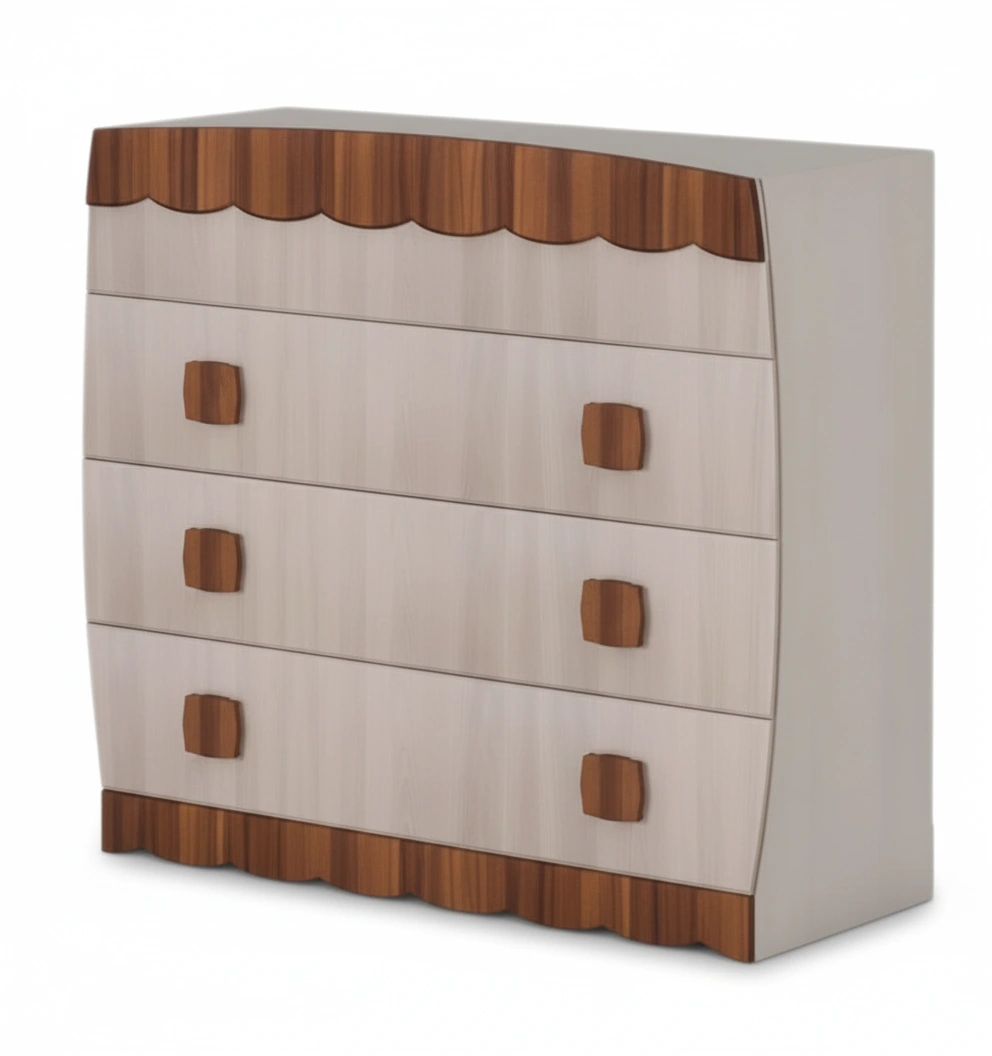 تمام اجزای این سرویس از ورق ملامینه مرغوب با روکش وکیوم مقاوم ساخته شدهاند و علاوه بر جلوه طبیعی و لطیف، مقاومت بالایی در برابر خراش، رطوبت و تغییر رنگ دارند. کیفیت بالای ساخت، انحنای نرم در زوایا و ایمنی دقیق در طراحی باعث شده این مدل یکی از پرطرفدارترین گزینهها برای خانوادههایی باشد که سلیقهای کلاسیک و گرم دارند.