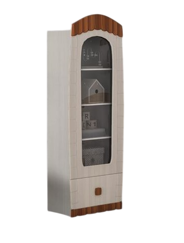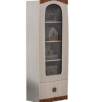 ویترین دکوراتیو باریک و مرتفع با قاب شیشهای ظریف و طراحی هماهنگ برای نگهداری و نمایش وسایل تزئینی یا کاربردی.