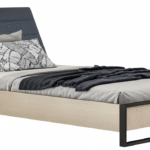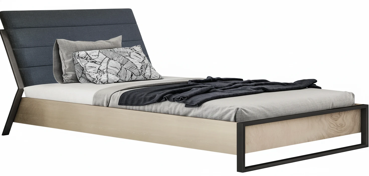 تخت نوجوان با بدنهای چوبی و فریم فلزی مقاوم، ظاهری صنعتی و امروزی دارد. تاج تخت با روکش پارچهای خاکستری تیره، در عین سادگی حس گرما و راحتی را منتقل میکند. ترکیب رنگ طبیعی چوب بلوط در کنار پایههای فلزی مشکی، هماهنگی بینقصی بین نرمی و استحکام ایجاد کرده است.