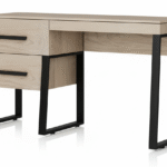 میز تحریر با طراحی کاربردی و چندکشو، فضایی مناسب برای تحصیل یا کارهای روزانه فراهم میکند. پایههای فلزی و سطح صاف چوبی آن، هم از نظر زیبایی و هم از نظر دوام در سطح بالایی قرار دارد. کمد لباس دودرب با طراحی ساده و دستگیرههای مشکی، جایگاه مناسبی برای نگهداری لباسها و لوازم شخصی فراهم میآورد.